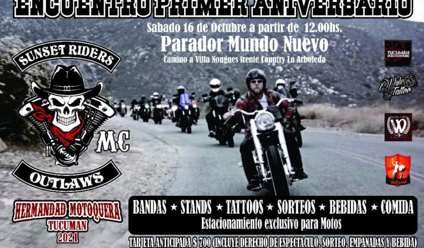 Sunset Riders Outlaws Tucuman es un grupo de amigos que durante la pandemia que sufrimos decidió reunirse con el fin de compartir el amor por las motos y el rock, reforzando lazos de amistad y compañerismo entre sus miembros y con la idea de sumar personas que compartan su pasión.